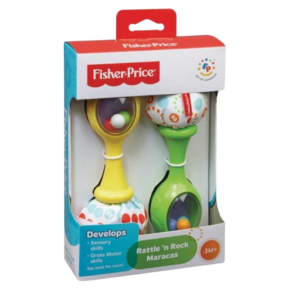 Lodër për bebe nga Fisher Price. Këto lodra do të bëjnë që foshnja të trokasë dhe të lëkundet në ritmin e tyre brenda një kohe të shkurtër. Bebes do t'i pëlqejë të bëjë muzikë me këto lodra shumëngjyrëshe. Ato janë madhësia perfekte për duart e vogla për t'i kapur, tundur dhe tronditur lehtësisht. Rruaza me zhurmë shumëngjyrëshe rrotullohen në njërën anë ndërsa foshnja e lëviz atë.