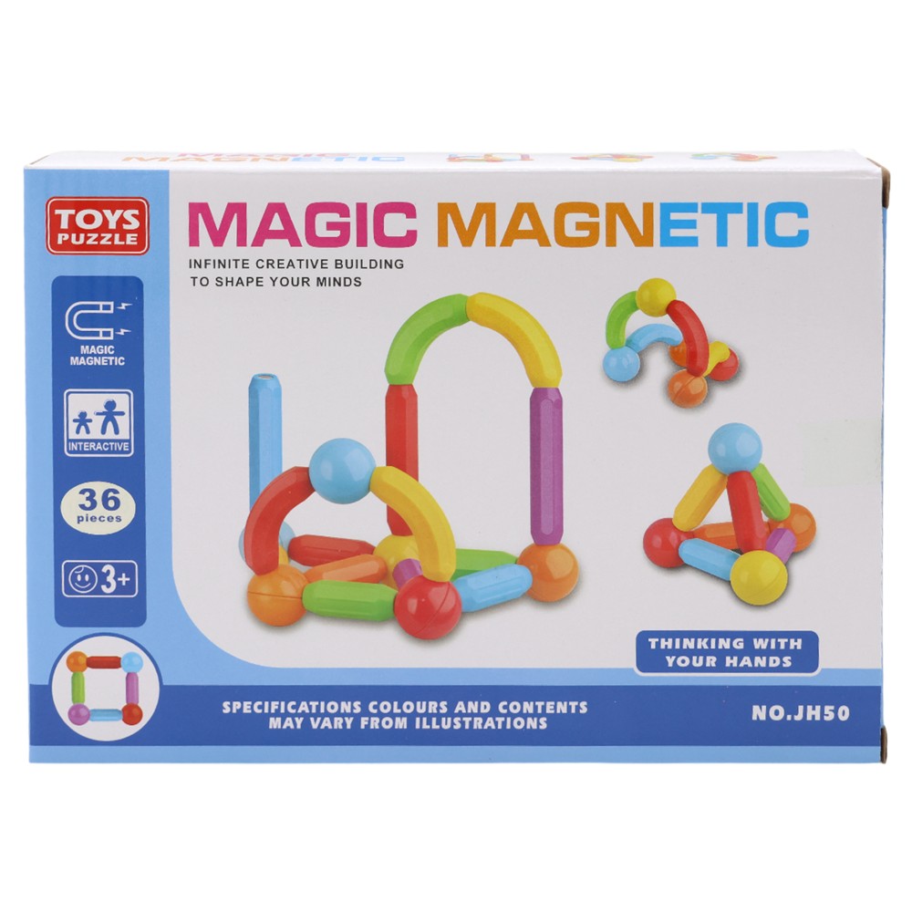 Set Formues Magnetik, me gjithsej 36 pjesë, perfekt për ndërtim kreativ dhe argëtim edukativ. Ky set shumëngjyrësh lejon fëmijët të krijojnë forma, struktura dhe modele të ndryshme duke përdorur fuqinë e magnetëve, duke sjellë lojëra të pafund me kombinime të larmishme.