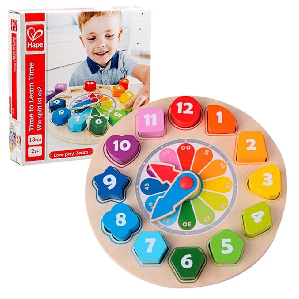 Lodër për fëmijë, Hape, Time to learn time, druri, 26x26x4 cm, mikse, +24 muajsh, 1 copë