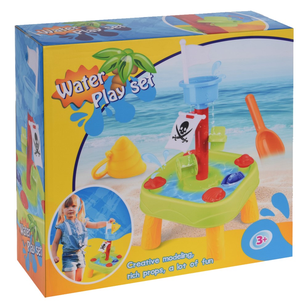 Luani me ujë dhe këtë tryezë pirate lojërash. Hidhni ujin në direke dhe shikoni mullinjtë me ujë të fillojnë të rrotullohen. Tavolina e ujit vjen me 2 varka, kanaçe uji në formë guacke, lopatë, flamur pirati dhe 4 forma të ndryshme rëre. Për orë të tëra ujë dhe argëtim!