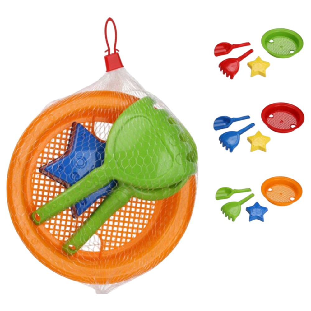 Loder rere per plazh, lopata dhe forma rere, 4 cope, ngjyra te ndryshme