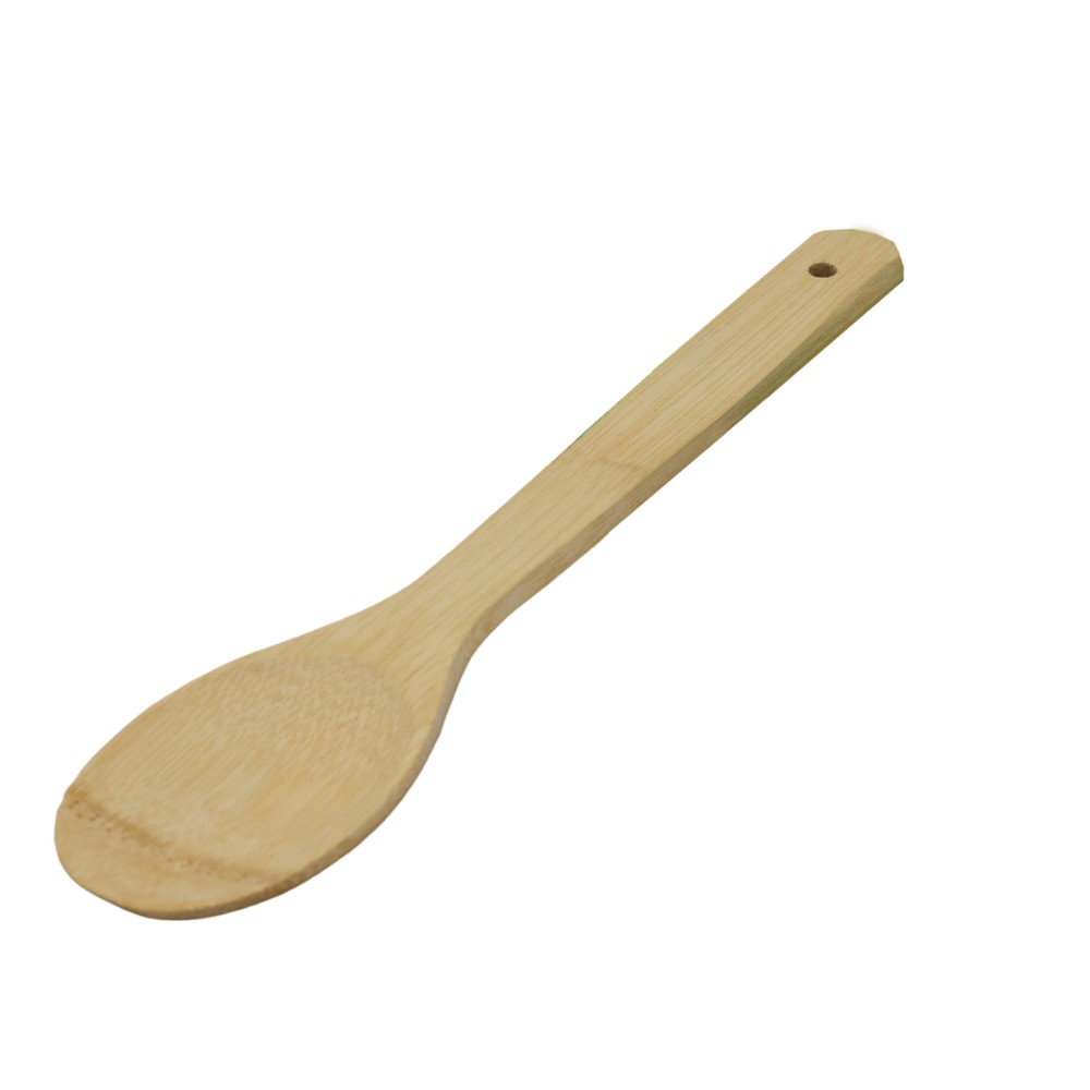 Lugë gatimi e realizuar nga bambu në ngjyrën kafe natyrale, me gjatësi 30 cm. Kjo lugë ofron një kombinim të bukur mes funksionalitetit dhe estetikës për gatimin tuaj të përditshëm.