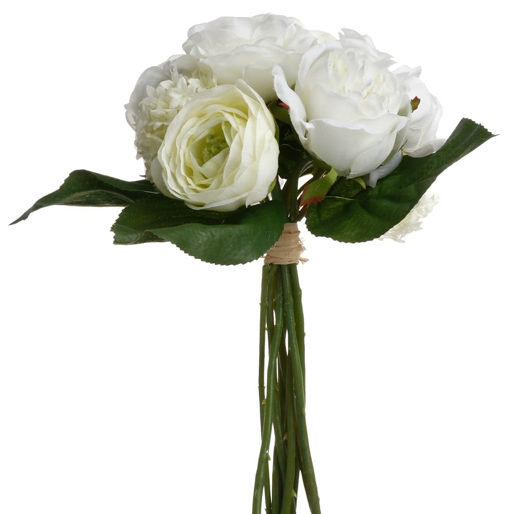 Po vlerësoni:Lule artificiale, buqetë, të ndryshme, poliester/metal/polietilen, e bardhë, 28x28xH31cm