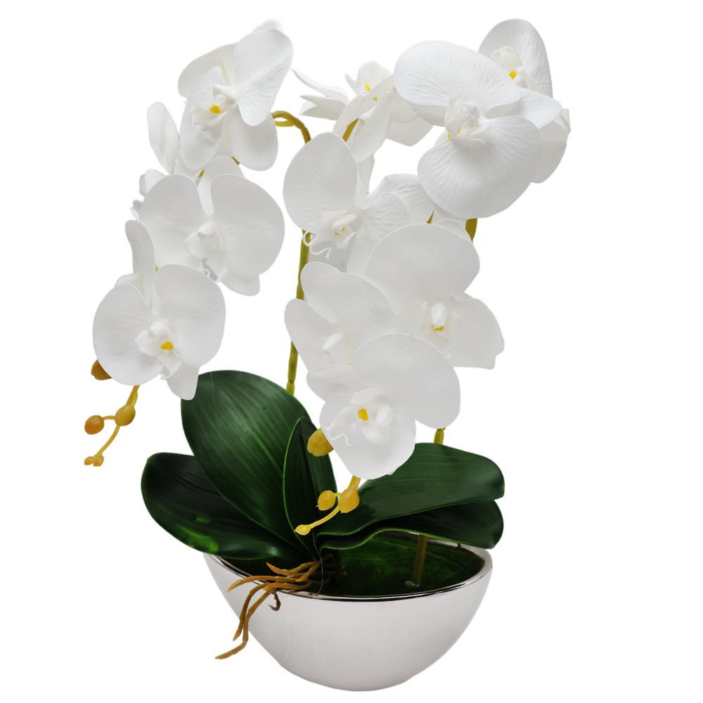 Lule artificiale, në vazo, plastike, e bardhë, 21x42 cm