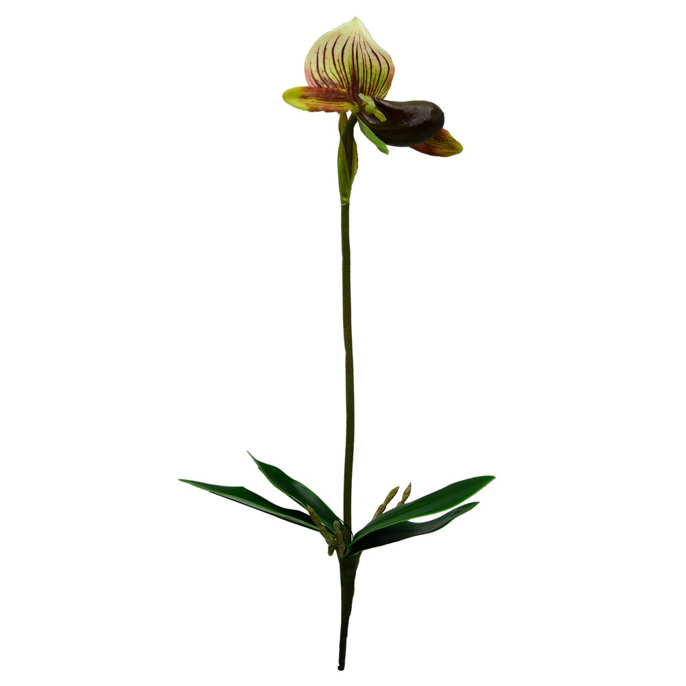 Lule artificiale, PAPHIOPEDILUM, plastike, jeshile/lejla, 40 cm