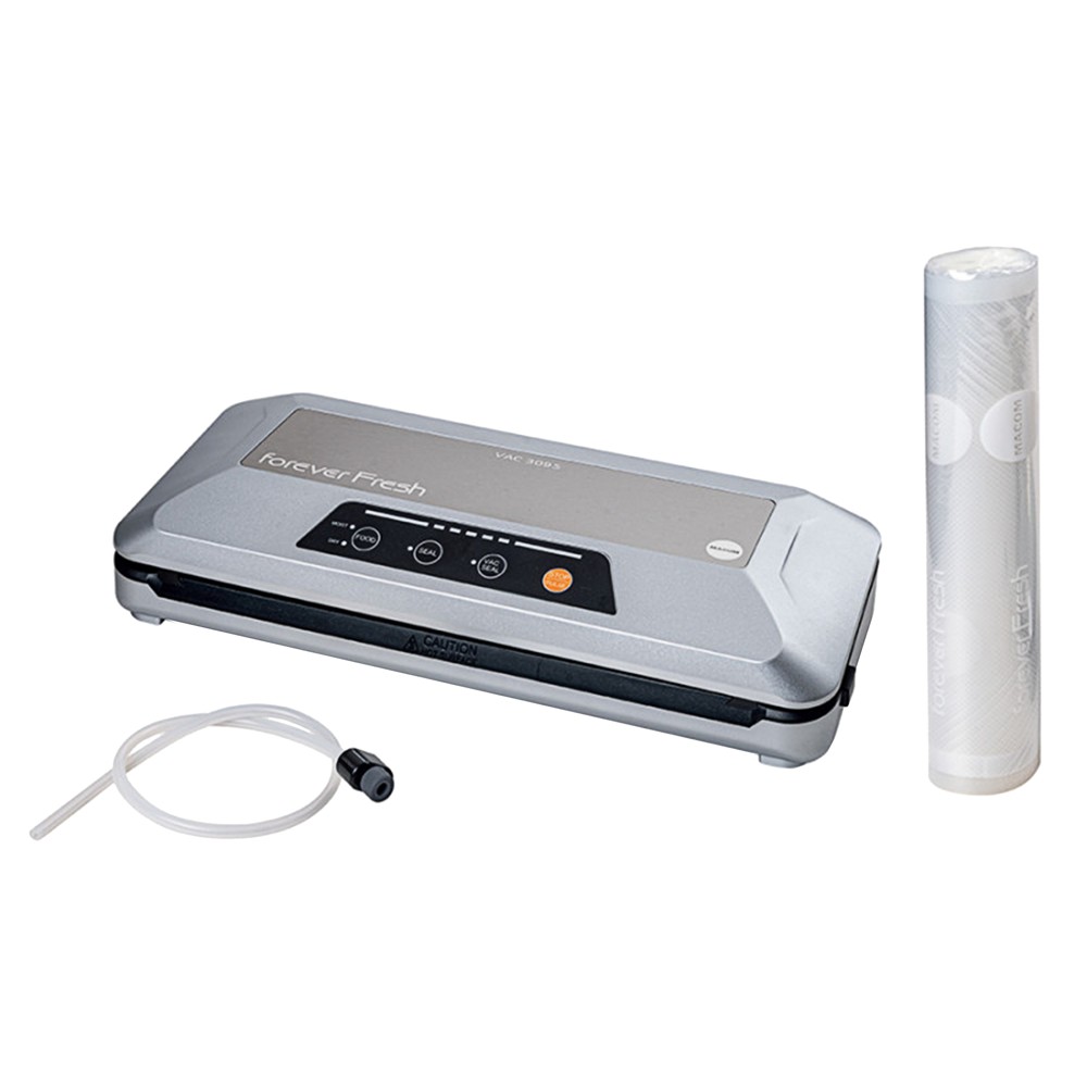 Makineri paketimi me vakum automatike. Me mbajtëse roleje dhe prerëse, për të krijuar çanta në madhësinë e dëshiruar, pa humbur materiale. Zgjedhës për paketimin e ushqimit të lagësht/thatë. Funksioni "Pulse" ju lejon të kontrolloni marrjen e ajrit duke favorizuar paketimin e ushqimeve, madje edhe ato më të thërrmuara. Shirit mbyllës me madhësi të dyfishtë që siguron një mbyllje hermetike. Dritat LED tregojnë ecurinë e operacioneve. Funksioni për kryerjen e vakumit me kontejnerët.