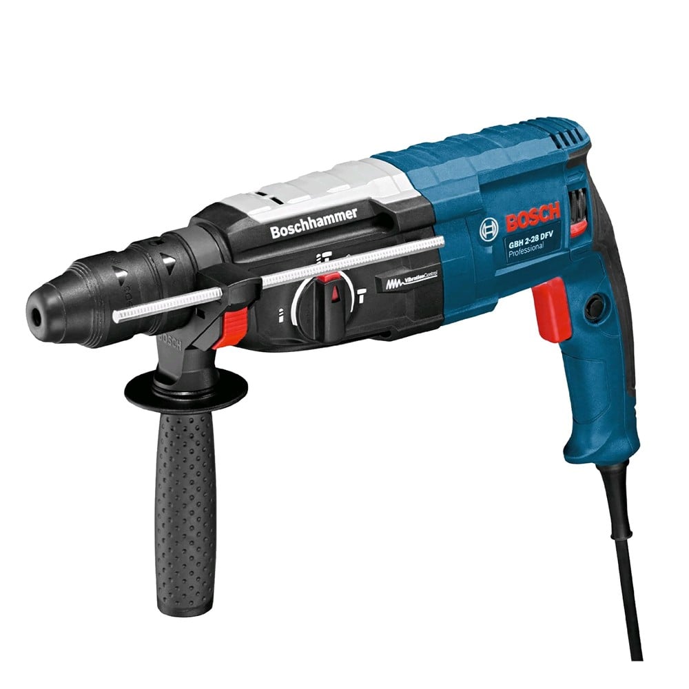 Trapani goditës GBH 2-28 DFV profesional SDS plus me 850 W fuqi është më i fuqishmi i klasës së tij.Ai ka normën më të lartë të shpimit dhe performancën më të mirë goditëse në klasën e tij. Ka jetëgjatësi 25% më më madhe se trapanët e tjerë të klasës së tij dhe 27% më pak vibrime se sa modeli paraardhës i tij. Kalimi i punës bëhet shumë shpejtë midis shpimit me goditje në beton dhe shpimit pa goditje ne dru dhe metal.Ka siguresë mbingarkese për të mbrojtur përdoruesin dhe pajisjen si dhe kryen rrotullimin para/mbrapa.