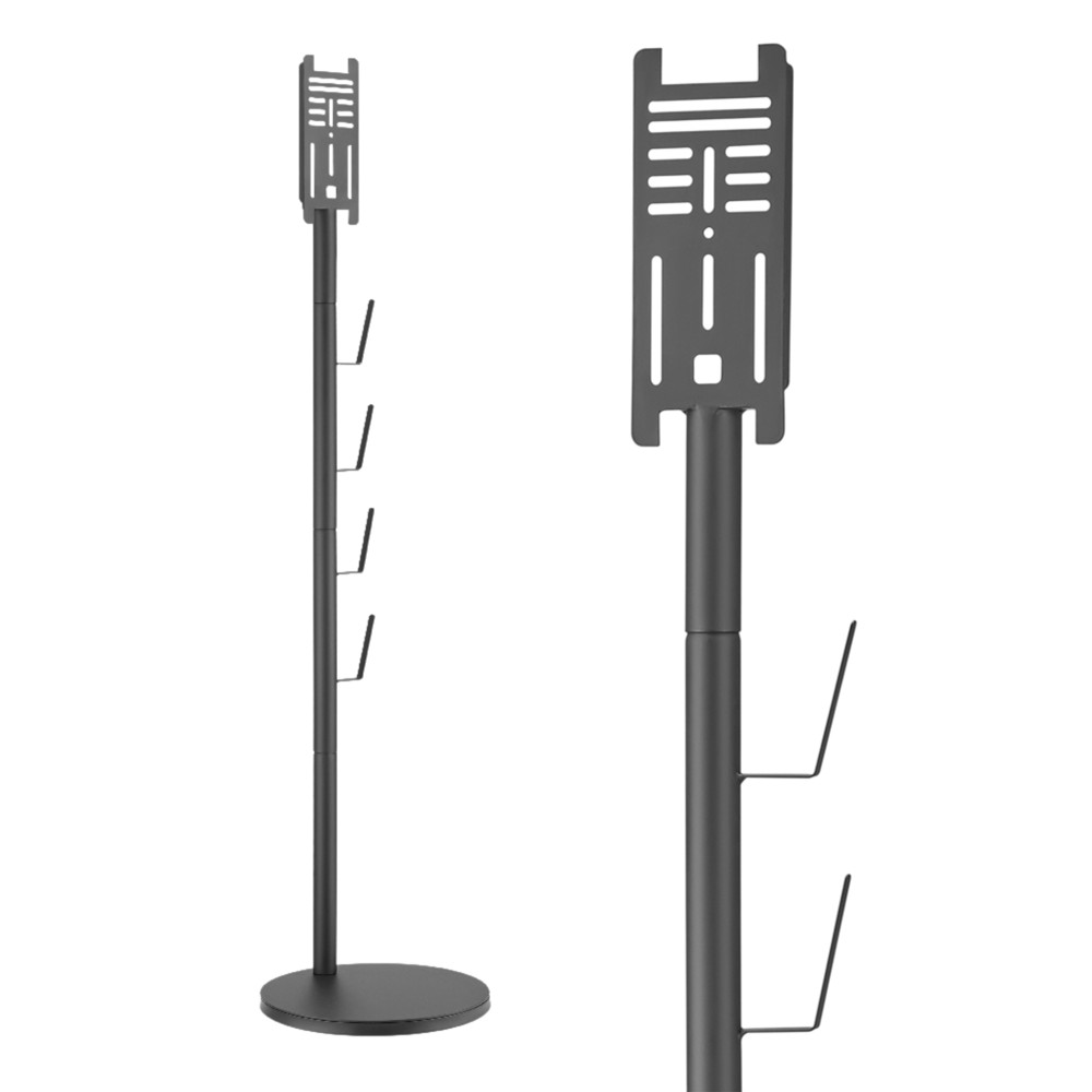 Mbajtëse universale për fshesë me korrent. Një mbështetëse dyshemeje elegante dhe e fortë që optimizon hapësirën, e mban fshesën me korrent dhe aksesorët e saj të organizuar dhe gjithmonë të arritshëm. Universale, përshtatet me të gjitha fshesat me korrent me shkop. Dizajn i hollë që kursen hapësirë. Grepa për ruajtjen e aksesorëve. Bazë e gjerë dhe e fortë për stabilitet kundër përmbysjes. Kapacitet i lartë ngarkese. Materiali Çelik.