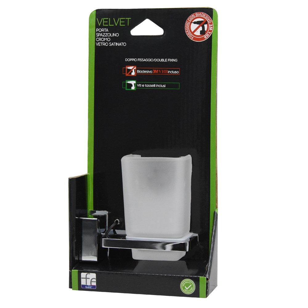 Mbajtëse furçe dhëmbësh, FERIDRAS, VELVET, me montim në mur, xham, çelik, I kromuar