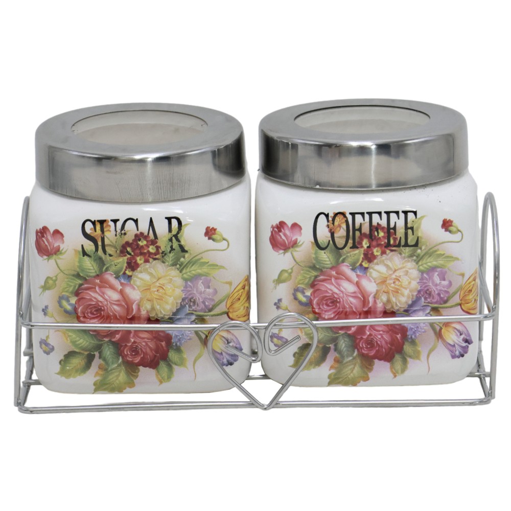 Mbajtëse elegante për kafe dhe sheqer, e realizuar nga qeramika në ngjyrën e bardhë, me dimensionet 10.5x18 cm. Ky produkt është një zgjedhje shkëlqyese për të organizuar kafenë dhe sheqerin në tavolinë apo në raftet e kuzhinës.