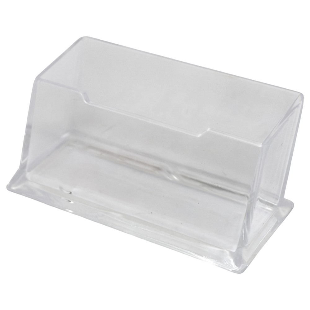 Mbajtëse kartvizitash plastike, transparente. Praktike dhe elegante për të organizuar kartvizitat tuaja në tavolinë. E bërë nga plastikë e qëndrueshme dhe transparente, me dimensione 10x4x5 cm. Ideale për zyrë, punë ose shtëpi..