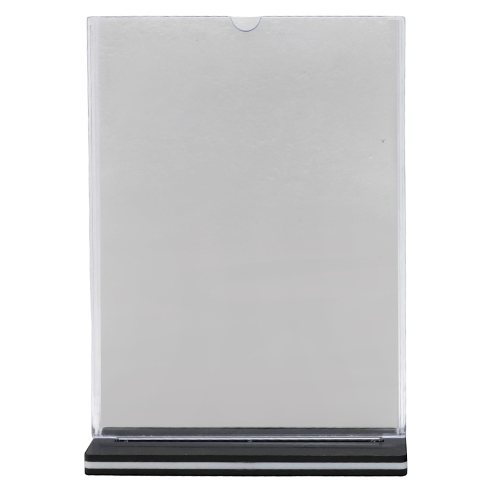 Mbajtëse menuje plastike, në format A4, në ngjyrë të zezë dhe transparente. E dizajnuar për të mbajtur dhe ekspozuar menutë në restorante, kafe, apo ambiente të tjera shërbimi. E lehtë për t'u pastruar dhe shumë funksionale, kjo mbajtëse është ideale për përdorim të përditshëm, duke siguruar një pamje të rregullt dhe elegante.