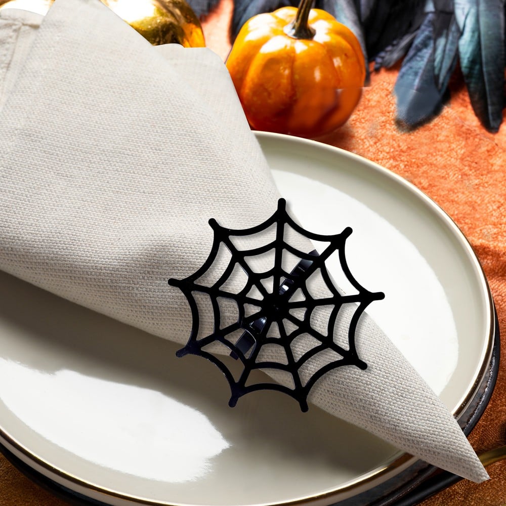 Nëse po organizoni një festë për halloween, kjo mbajtëse pecete me disenjon e një rrjete merimange do t'a bëjë edhe më të vecantë dekorin e tavolinës. Ajo është prej material metalik në ngjyrë të zezë.