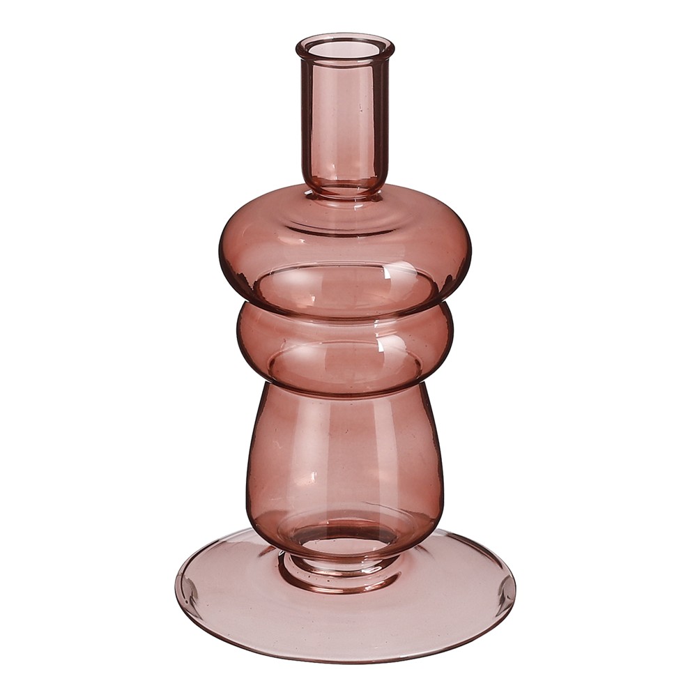 Po vlerësoni:Mbajtëse qiriri, qelq, rozë hapur, Ø10.5 xH18 cm
