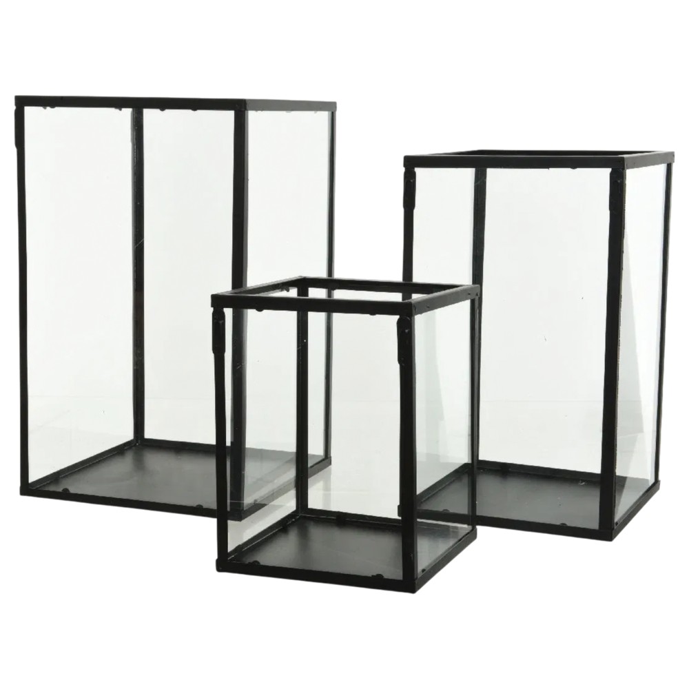 Mbajtëse qiriri, set 3 copë, qelq, e zezë, 24x24xH40.5 cm