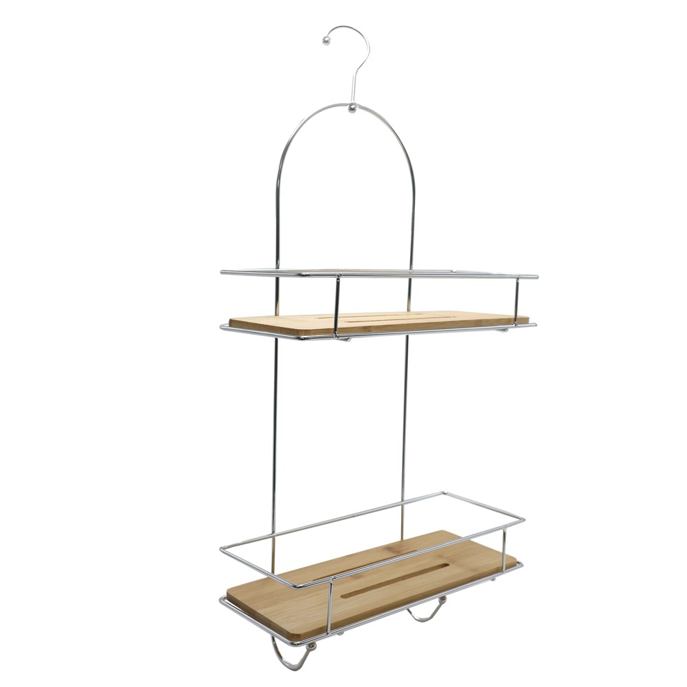 Rafti i dushit me 2 nivele prodhuar nga material metal i kromuar, i kombinuar me drurin e bambusë është i përsosur për një mjedis banjo të lagësht. Është një material rezistent dhe në të njëjtën kohë i lehtë për t'u pastruar. Uji mund të derdhet lirshëm nga hapjet në rafte, duke lejuar që sfungjeri, sapuni dhe aksesorët e tjerë të thahen lirshëm dhe mos të zhvillohet myku.