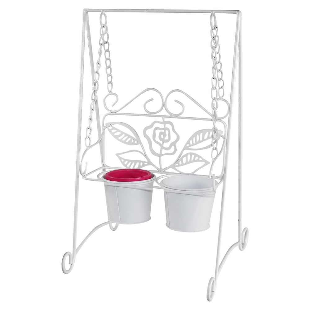 Mbajtëse vazo lulesh (për 2 vazo), metalike, e bardhë, 41x29xH41 cm