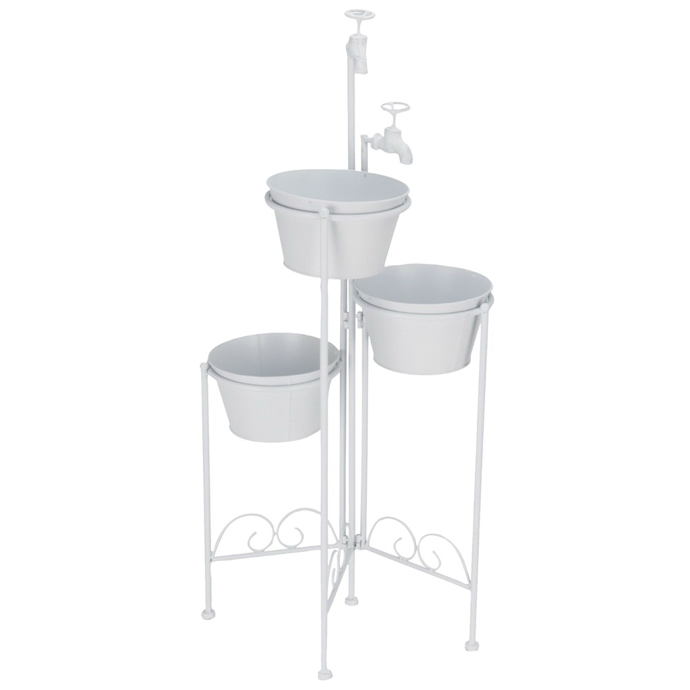 Mbajtëse vazo lulesh (për 3 vazo), metalike, e bardhë, H93 cm