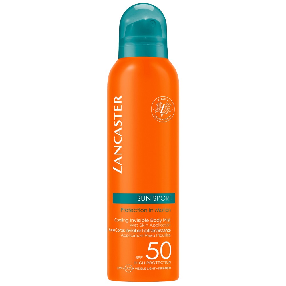 Lancaster Sun Sport Cooling Invisible Body Mist SPF50 200ml është një mbrojtje e lartë kundër diellit për trupin, rezistent ndaj djersës dhe ujit. Ofron mbrojtje me spektër të gjerë me një efekt ftohës të menjëhershëm. I përshtatshëm për lëkurën, ai synon 100% të spektrit të diellit dhe gjithashtu ndihmon në riparimin e lëkurës së dëmtuar nga dielli. Shumë e lehtë dhe e shpejtë për t'u aplikuar, formula e saj transparente dhe e lehtë e lejon lëkurën të marrë frymë edhe gjatë aktiviteteve sportive intensive.