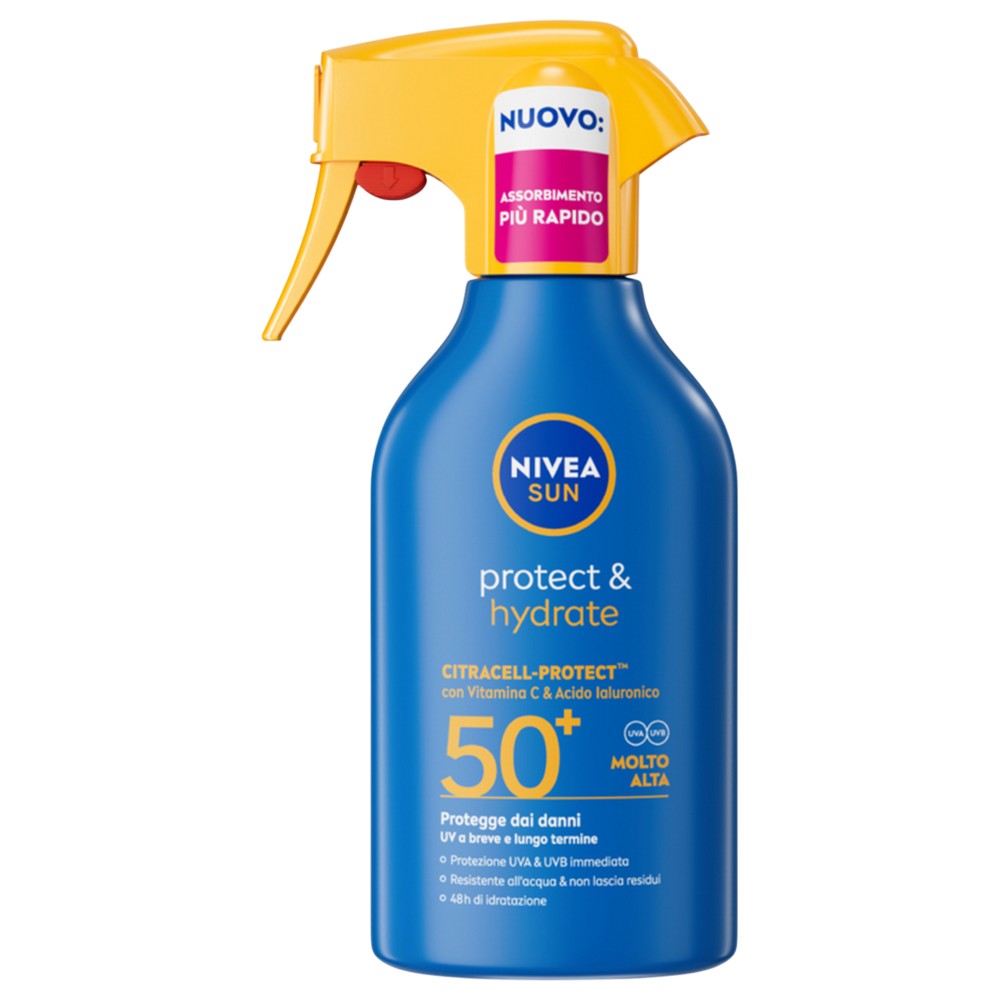 Nivea Protect & Hydrate SPF 50+ është krem mbrojtës i avancuar nga dielli që ofron mbrojtje shumë të lartë kundër rrezeve UVA dhe UVB. Formula e tij e pasur dhe me efekt hidratues siguron që lëkura të qëndrojë e lagur, e butë dhe e shëndetshme gjatë gjithë ditës, duke parandaluar tharjen dhe dëmtimet nga dielli. Ky mbrojtës është rezistent ndaj ujit dhe djersës, ideal për përdorim në kushte të ndryshme, duke ofruar mbrojtje të qëndrueshme edhe gjatë aktiviteteve në natyrë. Rezistent ndaj ujit dhe djersës. Vendosni një sasi të bollshme kremi në lëkurë të pastër, të paktën 15-20 minuta përpara daljes në diell. Aplikoni sërish çdo 2 orë, dhe pas çdo noti, djersitjeje ose fshirjeje me peshqir, për të ruajtur mbrojtjen.