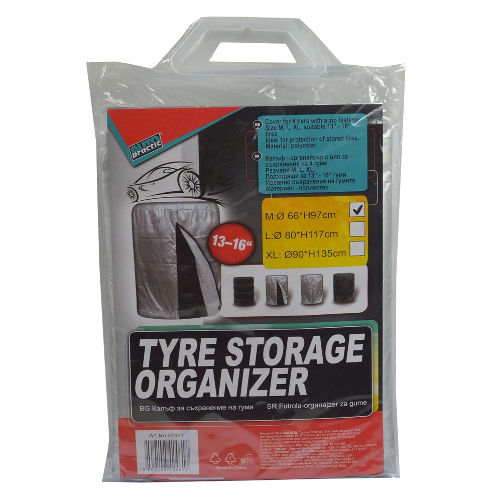 Mbulese Gomash per magazinim Masa: L Sk-52461 e ndertuar prej materiali polietilieni shume rezistent, e papershkueshme nga uji dhe rezistente ndaj rrezeve te diellit. Mbulon lehtesisht gomat dhe fale formes se saj eshte shume elastike dhe e qendrueshme per magazinim. Lehtesisht e palosshme dhe nuk ze shume hapsire.