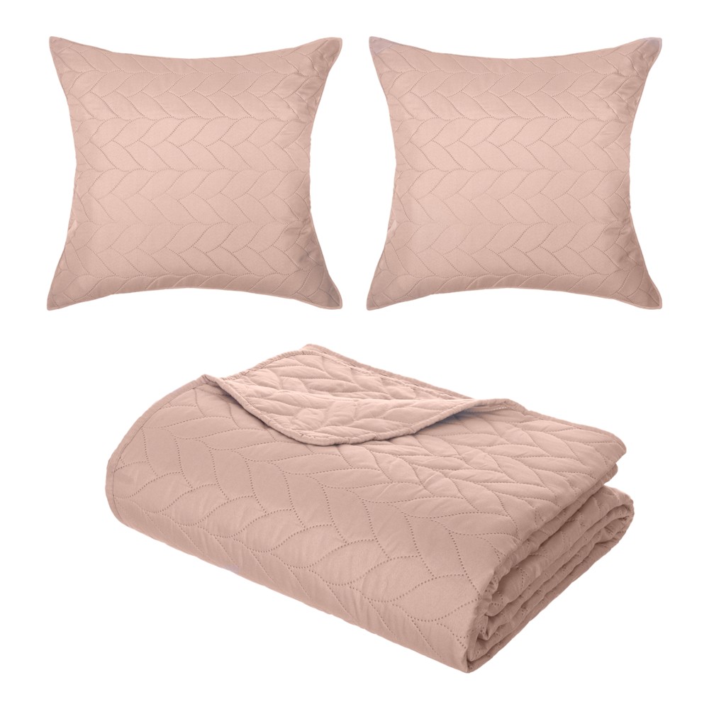 Set mbulesë krevati dopio, në ngjyrë rozë të lehtë, i cili përfshin një mbulesë krevati dhe dy këllëfë jastëkësh. Mbulesa e krevatit ka mbushje poliestre, e cila i jep veti hipoalergjike, që ndihmojnë në ruajtjen e freskisë dhe pastërtisë për një kohë më të gjatë. Dizajni njëngjyrësh me teksturë me qepje i mbulesës e bën këtë set një zgjedhje origjinale dhe lehtësisht të kombinueshme për dhomat tuaja të gjumit. Seti mund të lahet lehtësisht në lavatriçe dhe është rezistent ndaj njollave.
