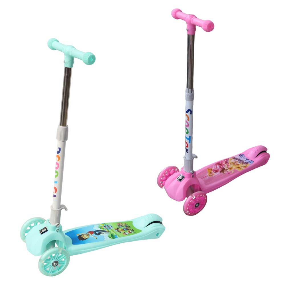 Monopatinë për fëmijë, personazhe vizatimor, rrota me dritë, ngjyra mikse