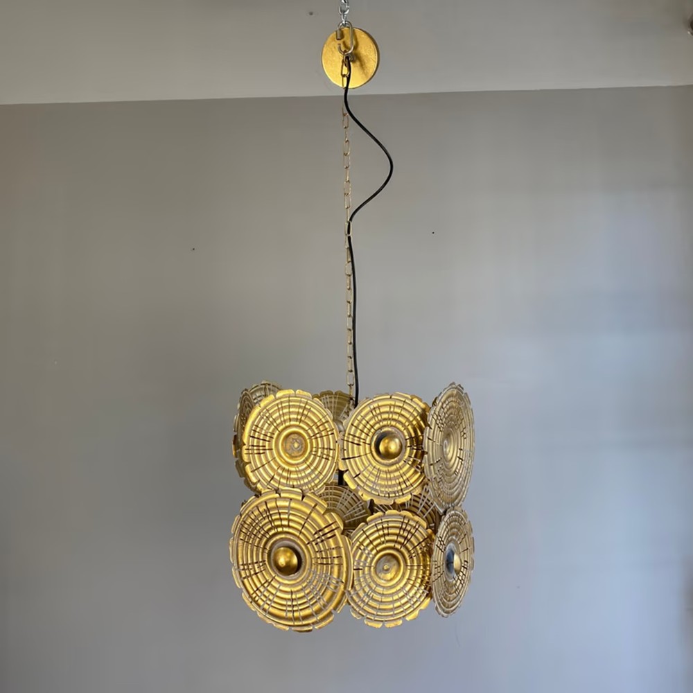 Ndriçues i varur E27, me trup metalik, ngjyrë ari, me përmasa 44x43 cm. Ky ndriçues ka një dizajn elegant dhe luksoz, i përshtatshëm për ambiente moderne dhe të sofistikuara. Ngjyra ari i jep një ndriçim të ngrohtë dhe atmosferë të rafinuar, duke e bërë atë një zgjedhje perfekte për dhoma ngrënieje, sallone apo hapësira të tjera që kërkojnë stil dhe elegancë.