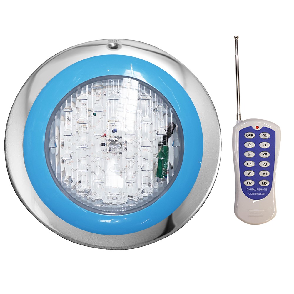 Ndricues LED per pishina, 9W, RGB, IP68, eshte zgjedje ideale per ndricimin e pishinave . Ndricuesi vendoset brenda ne uje, fale tensionit te tij 12V e ben ate shume te sigurt per kontaktin me rrymen elektrike. Eshte I pajisur me telekomante duke ju ofruar te zgjidhni vete ndricimin e deshiruar