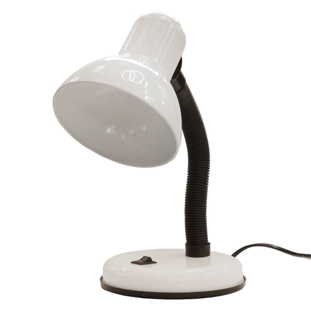 Ndricues tavoline leximi, E27, metalik, I bardhe.  Ndriçuesi i tavolinës do të ishte një zgjedhje e përsosur për ti shndërruar hapsirat tuaja të brendëshme të banimit, të bareve apo restoranteve në hapsira mikpritëse dhe plot stil. Ky ndriçues tavoline i stilit bashkëkohor ju jep mundësi të pafundme kombinimi.