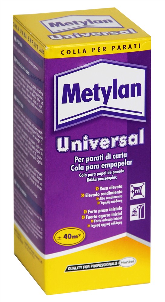 Ngjitës letre muri, universal, 125 gr. Ngjitës letre muri me bazë niseshte me cilësi të lartë. Për të ngjitur të gjitha llojet e letrës së murit: të lehta, normale, të rënda dhe ekstra të rënda, letra muri me bazë vinyl dhe tekstil. Sipërfaqja duhet të jetë e thatë, e pastër nga pluhurat, ndryshku dhe graso. Gati për t'u përdorur brenda 15 minutave. Hollohet me 8 litra ujë dhe mbulon 40 m2.