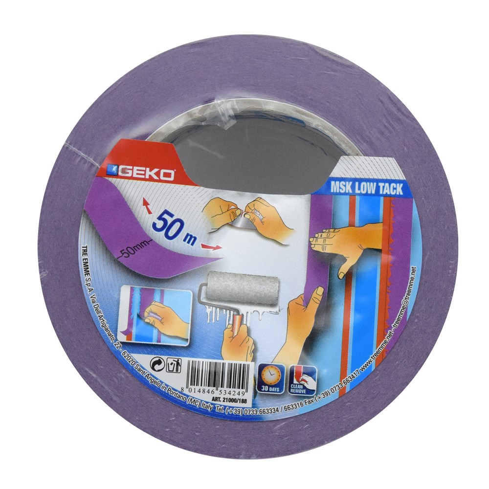 Ngjitës letre (tenije), Geko, MSK Low tack, 50 mm x 50 m, vjollcë