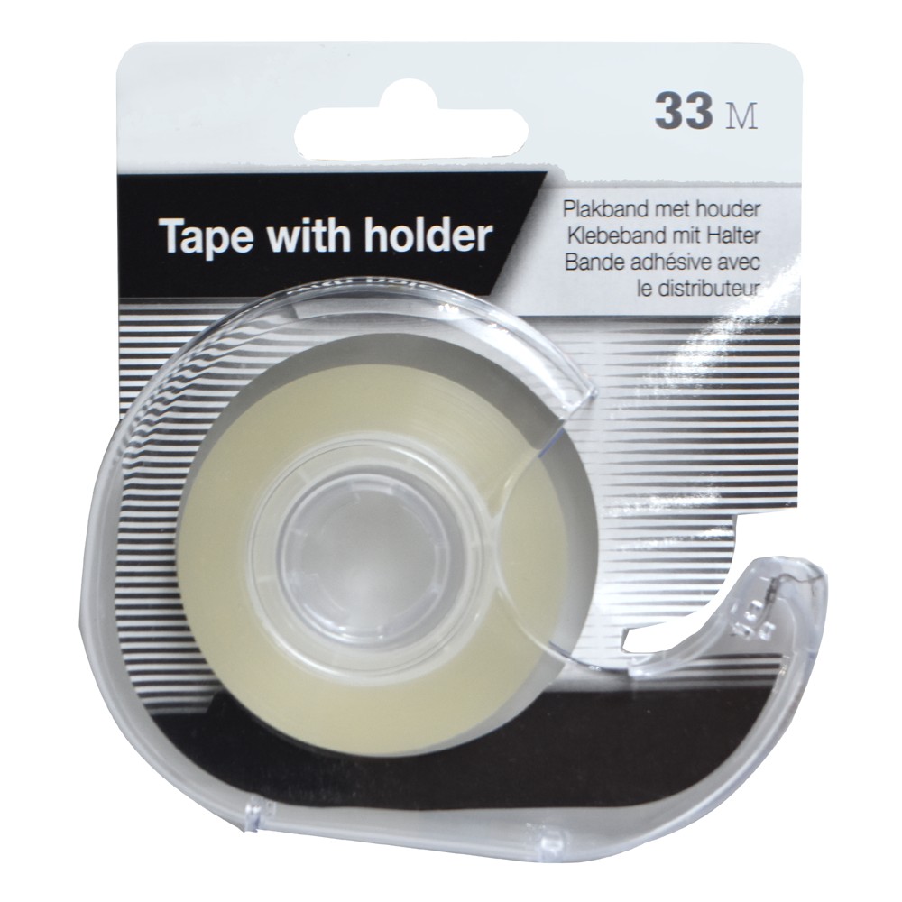 Mbajtëse për ngjitës shirit, në ngjyrë transparente, prej materiali plastik rezistent, e pajisur me një pjesë metalike me dhëmbëza për prerjen e ngjitësit dhe një ngjitës shirit. Përdoret për mbajtjen dhe prerjen e ngjitësit shirit, si edhe për dekorimin e tavolinave të fëmijëve.