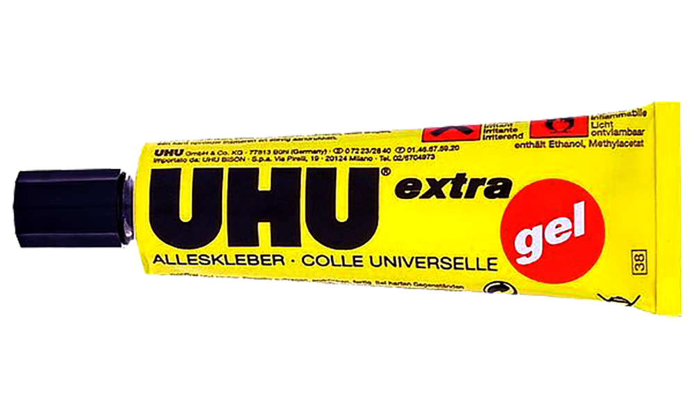 UHU ngjitësi universal ekstra nuk pikon, kristal i qartë, ngjitës unik universal për ngjitje të pastër. Një xhel i cili është ideal për përdorim në sipërfaqet vertikale. Pjesa e ngjitur mbetet elastike dhe nuk rrudhet. Universal - ngjitës druri, Plexiglas, metal, qelq, qeramik, lëkurë, pëlhura, karton, letër. Jo i përshtatshëm për PE, PP. Për një ngjitje të mirë sipërfaqet duhet të jenë të thata dhe pa pluhur apo yndyrë.