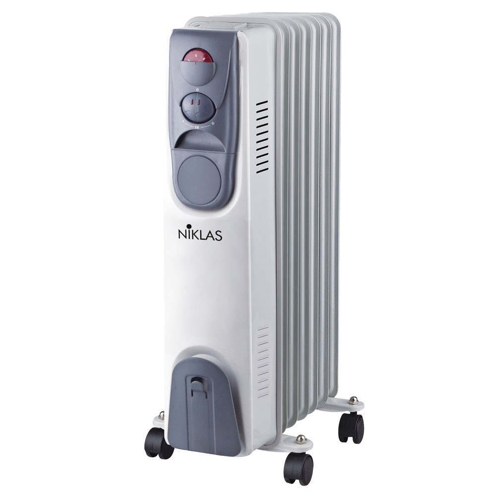 Radiator elektrik NIKLAS i mbushur me vaj me fuqi 500/1000/1500 W. Trup metalik me 7 elemente, termostat dhome dhe 3 fuqi ngrohjeje. Ideale për ngrohjen e ambjenteve të brendshme. E pajisur me rrota të forta. Dizajn i bukur. Dimensionet 16x65x39 cm. Pesha 8.5 kg. Furnizimi me energji 230 V.