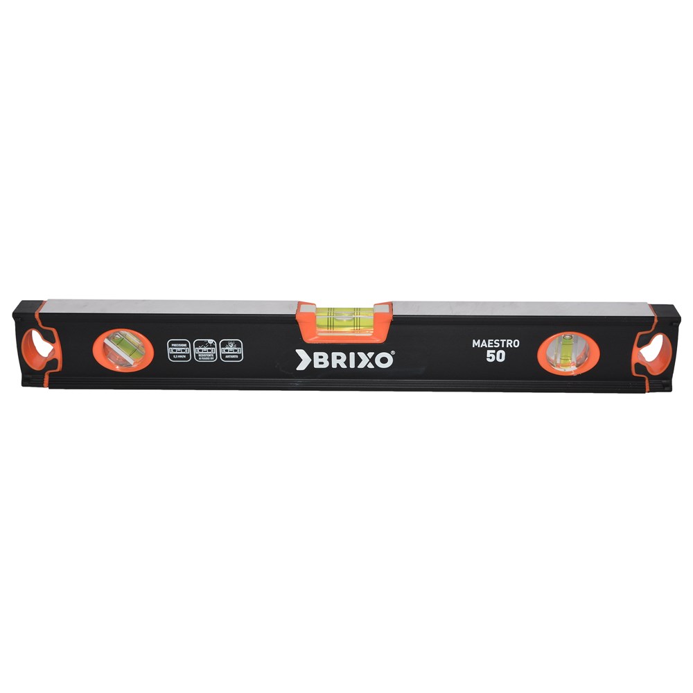 Linjes profesionale tashme te njohur te markes BRIXO I shtohen nivelat e nje precizioni te larte. Keto nivela me nje shkalle gabimi 0.5mm ne nje meter (0.5mm/m) do te sjellin ne doren e ndertuesit nje saktesi perfekte. Te prodhuara nga kombinime metalesh, si dhe nderthurja plastike, e ben kete vegel te lehte dhe shume rezistente ne te njejten kohe. Te lyer me boje te perpunuar me nailon si dhe pjekje te gjate per ta mbrojtur nga koresioni ne siperfaqe. Gjithashtu me nje dukshmeri shume te larte te bulzes ne matje dhe nivelime. Kjo game produktesh i shtohet fushes se profesionisteve ne fushen e ndertimit si muratore, karpentiere, shtrues pllakash etj.