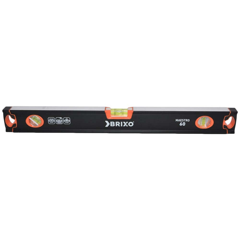 Linjes profesionale tashme te njohur te markes BRIXO I shtohen nivelat e nje precizioni te larte. Keto nivela me nje shkalle gabimi 0.5mm ne nje meter (0.5mm/m) do te sjellin ne doren e ndertuesit nje saktesi perfekte. Te prodhuara nga kombinime metalesh, si dhe nderthurja plastike, e ben kete vegel te lehte dhe shume rezistente ne te njejten kohe. Te lyer me boje te perpunuar me nailon si dhe pjekje te gjate per ta mbrojtur nga koresioni ne siperfaqe. Gjithashtu me nje dukshmeri shume te larte te bulzes ne matje dhe nivelime. Kjo game produktesh i shtohet fushes se profesionisteve ne fushen e ndertimit si muratore, karpentiere, shtrues pllakash etj.