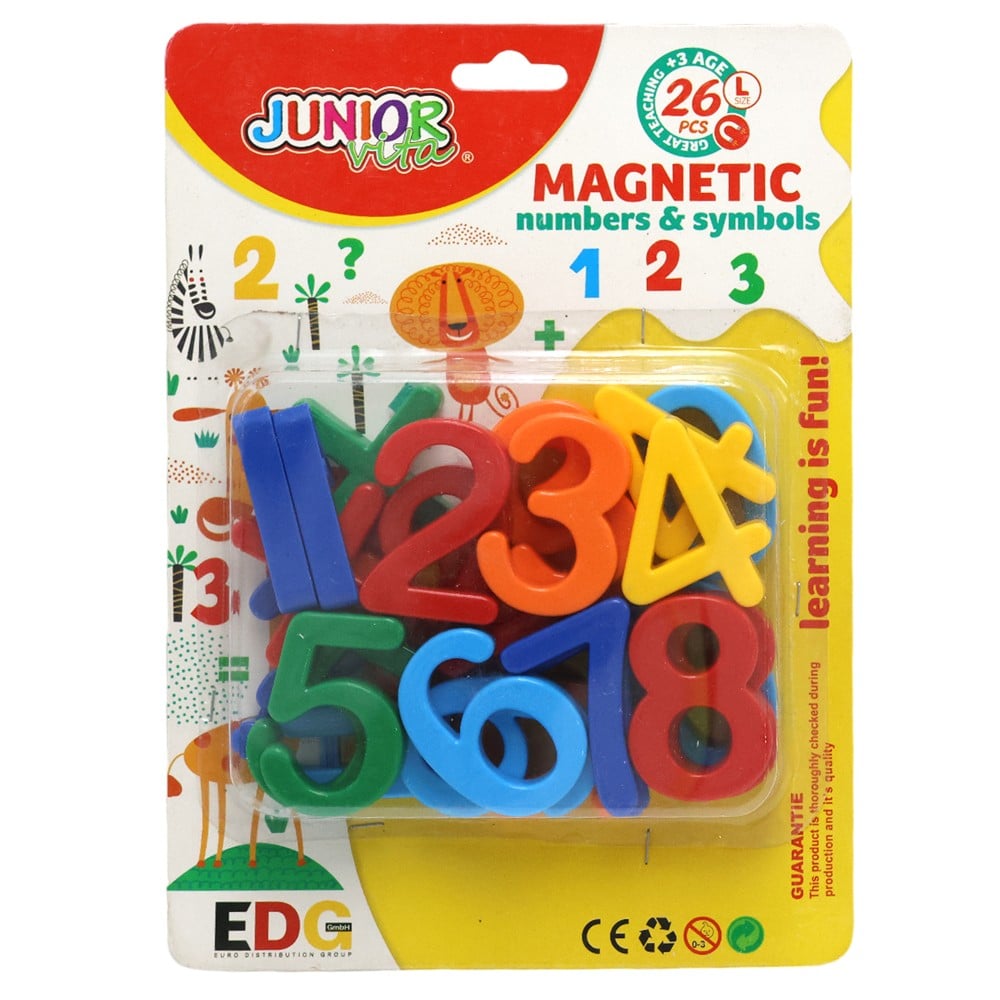 Seti i numrave magnetikë Junior Vita përmban 26 numra të ndryshëm, të cilët ofrojnë mundësi të pafundme për mësim dhe lojë. Me një dizajn tërheqës dhe magnetë të fortë, këta numra janë të përshtatshëm për sipërfaqe metalike dhe janë të lehtë për t'u përdorur nga fëmijët. Ideale për të ndihmuar në zhvillimin e aftësive matematikore dhe për të krijuar aktivitete edukative në shtëpi ose në klasë.