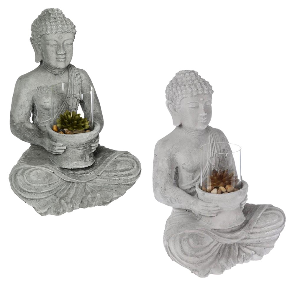 Po vlerësoni:Objekt dekorativ, Buddha, çimento/qelq/parafinë, gri, 29.5x26xH40 cm