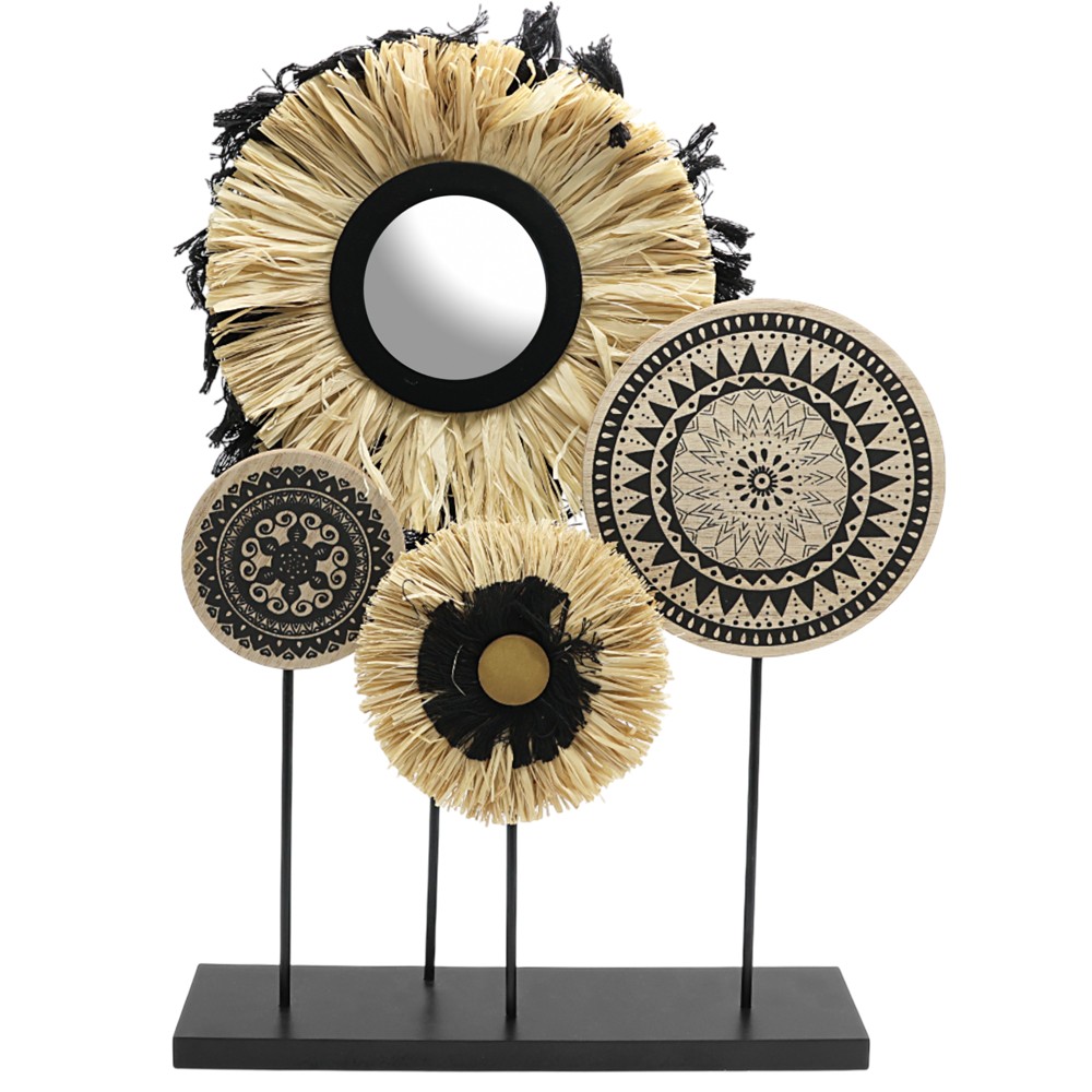Stili oriental po tërheq gjithmonë e më shumë vëmendjen tuaj. Ky objekt dekorues është një ndërthurje mes stilit kalsik dhe modern, dhe me një paletë ngjyrash shumë natyrale si kafe dhe e zezë që do të përshtatet shumë mirë me orenditë tuaja. Vjen e përbërë nga një sturkturë metalike, dhe në format e tjera ka përbërje druri dhe kashte. Ky objekt përshtatet shumë mirë me arredimet e ambienteve me stil oriental si baret dhe restorantet por mund të përshtatet shumë mirë edhe me dekorimet e shtëpive tuaja. Përmasat e objektit janë 9x30xH43 cm dhe përshtatet shumë mirë edhe me hapsirat boshe të rafteve. Një zgjedhje ideale për ju.