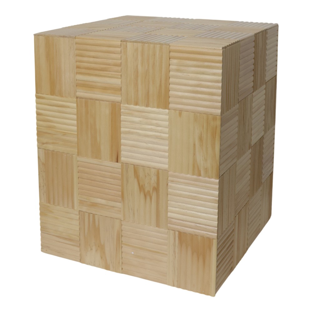 Ky objekt druri në formën e një kuboidi është një element shumë stilistik dhe një dekorues shumë i veçantë që duhet të shtohet në kategorinë e produkteve dekoruese që ju duhet të keni. Materiali cilësor i drurit dhe i punuar deri në detajet më të vogla, janë disa nga elementët që e karakterizojnë këtë objekt dekorues. Ngjyra e drurit natyral i jep një pamje shumë të këndshme dhe minimaliste. Vjen në përmasat 33.5x33.5xH33.5 cm dhe ngjason me një mozaik ku ju mund ta vendosni në raftet e shtëpive, zyrave apo edhe ambienteve të tjera që do të dekoroni.
