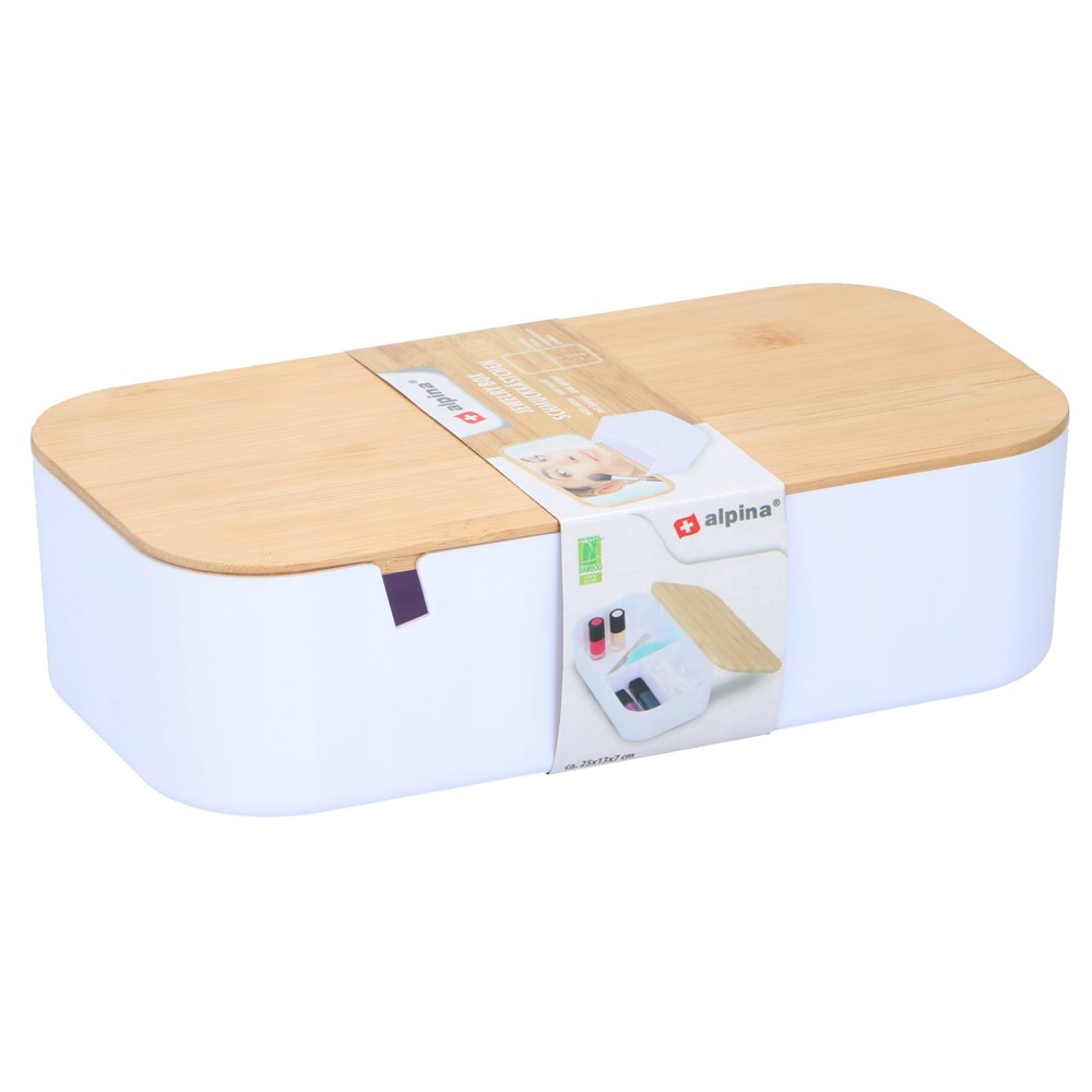I përshtatshëm për ruajtjen e pastër të kozmetikës, bizhuterive ose artikujve të banjës. Pasqyra e vendosur nën kapak gjithashtu mund të ngjitet në enë dhe të përdoret si pasqyrë make-up. Këshillë e shkëlqyer për dhuratë: mbushni organizatorin me artikujt tuaj të preferuar dhe jepini një dhuratë një përsoni shumë të veçantë.