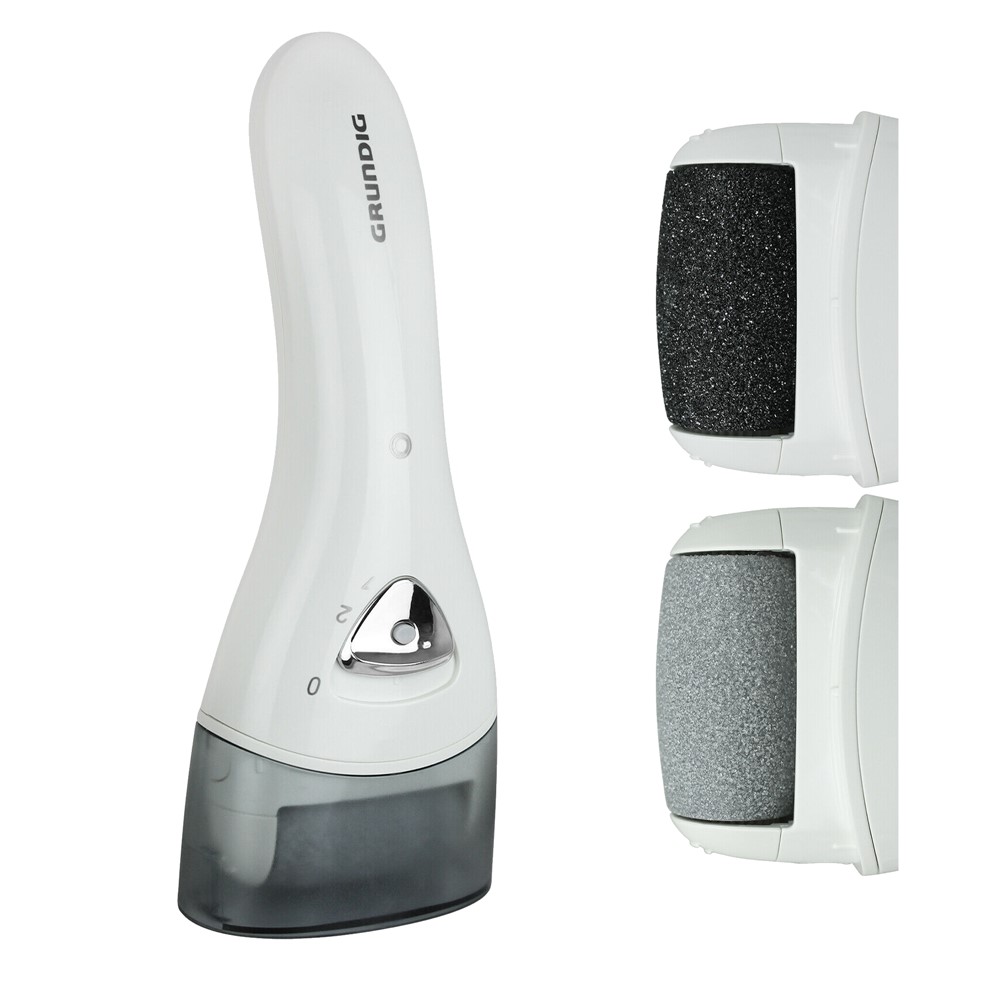 Pajisja për heqjen e kallove Grundig është ideale për zbutjen e lëkurës së thatë, të ashpër dhe të kallëzuar në këmbë. Ruli i lëmimit rrotullohet 40 herë në sekondë dhe heq butësisht dhe në mënyrë të sigurt lëkurën e tepërt dhe të fortë. Rulli për bluarjen është më e lehtë për t’u përdorur sesa një copë metalike, pasi nuk ka nevojë për teh. Ju mund të përdorni heqësin e kallove në çdo kënd mbi 300 gradë, i cili është veçanërisht i dobishëm në thembra. Kapaku mbrojtës i përfshirë në paketim mbron rulin e lëmimit nga papastërtitë dhe është veçanërisht praktik kur e merrni pajisjen me vete gjatë pushimeve. Pas afërsisht 2 orë karikim, mund ta përdorni pajisjen deri në 45 minuta pa kabllo.