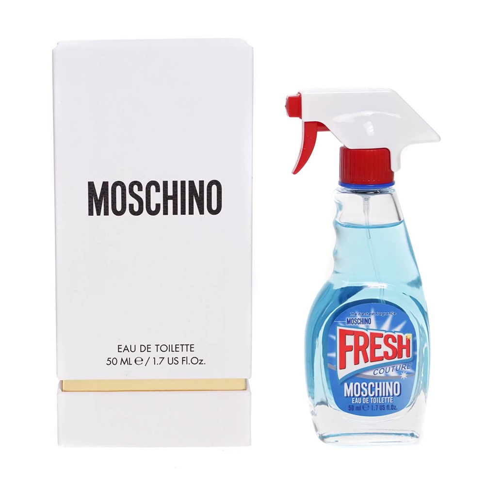 Parfum për femra, Moschino, Fresh Couture, EDT, qelq dhe plastikë, 50 ml, blu, e kuqe dhe e bardhë, 1 copë