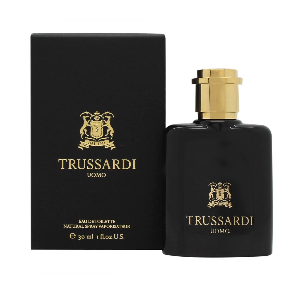 Parfum për meshkuj, Trussardi, Uomo, EDT, qelq, 30 ml, e zezë dhe gold, 1 copë