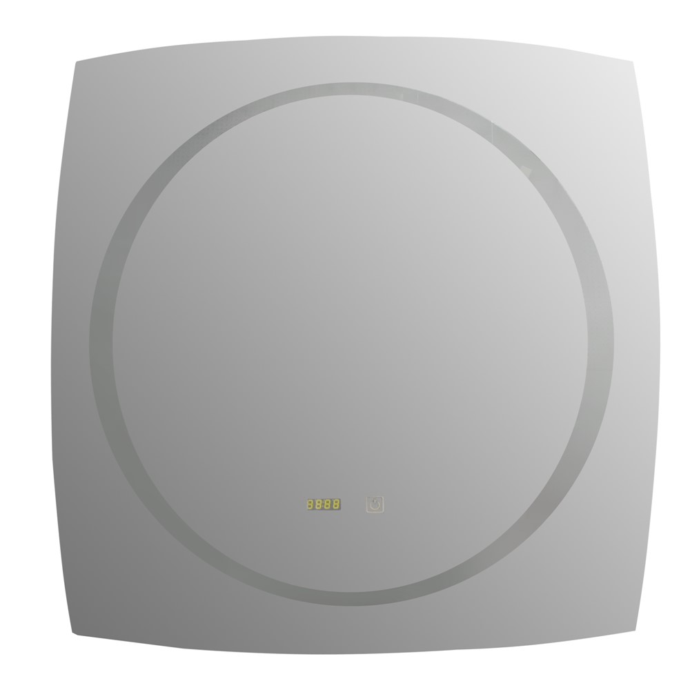 Pasqyrë me ndriçim LED, kornizë alumini, ndezja/fikja me prekje, me orë dhe temperaturë, 70x70 cm