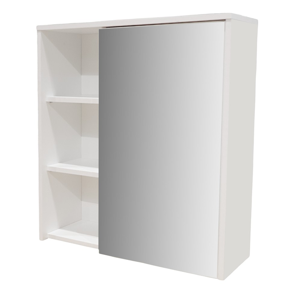 Pasqyra e tualetit "Naomi AL" është zgjidhja ideale për organizimin e sendeve personale në tualetin tuaj. Prodhuar në melaminë me spesor 16 mm e bën këtë pasqyrë tepër rezistente dhe jetgjatë. Ngjyra e bardhë e pasqyrës lejon që ky produkt të pershtatet lehtësisht me të gjithë tipet e arredimeve. Kjo pasqyrë është e përbërë nga 3 sergjenë në krahun e majtë si dhe një pasqyrë e cila hapet per të ekspozuar hapsirë magazinimi. Përmasat : lartësia : 75 cm, gjerësia : 70 cm, thellësia : 18 cm.