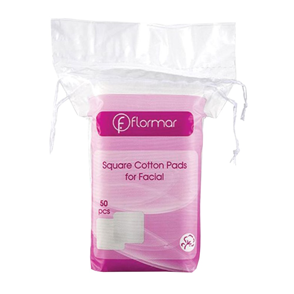 Peceta për heqjen e makeup-it, Flormar, pambuk, 14x7x7 cm, e bardhë, 50 copë