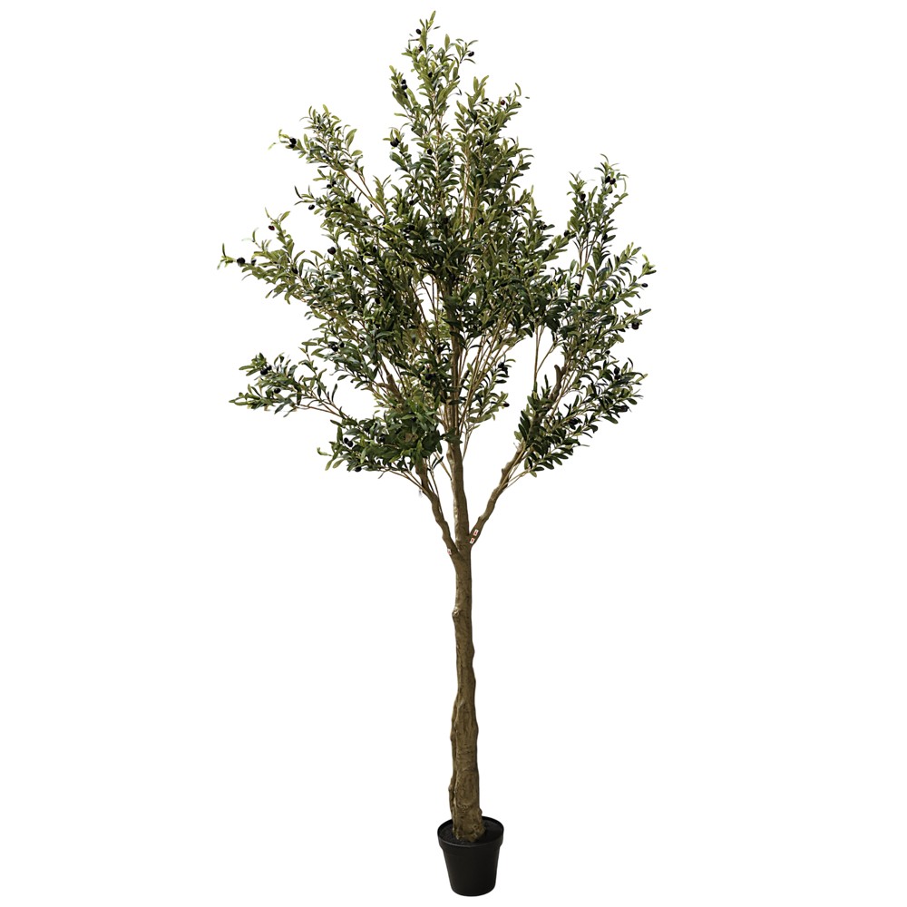Një zgjedhje që sjell freski dhe stil në çdo ambient, kjo pemë artificiale ulliri është realizuar me kujdes për të imituar në mënyrë sa më reale pamjen e një ulliri të vërtetë. Me gjethe në nuanca jeshile, ajo qëndron mbi një vazo moderne në ngjyrë të zezë dhe arrin një lartësi prej 300 centimetra. Një aksesor elegant dhe që ska nevojë për mirëmbajtje, i cili përshtatet lehtësisht si në hapësira të brendshme ashtu edhe të jashtme, duke i dhënë çdo këndi një atmosferë të qetë dhe natyrale.