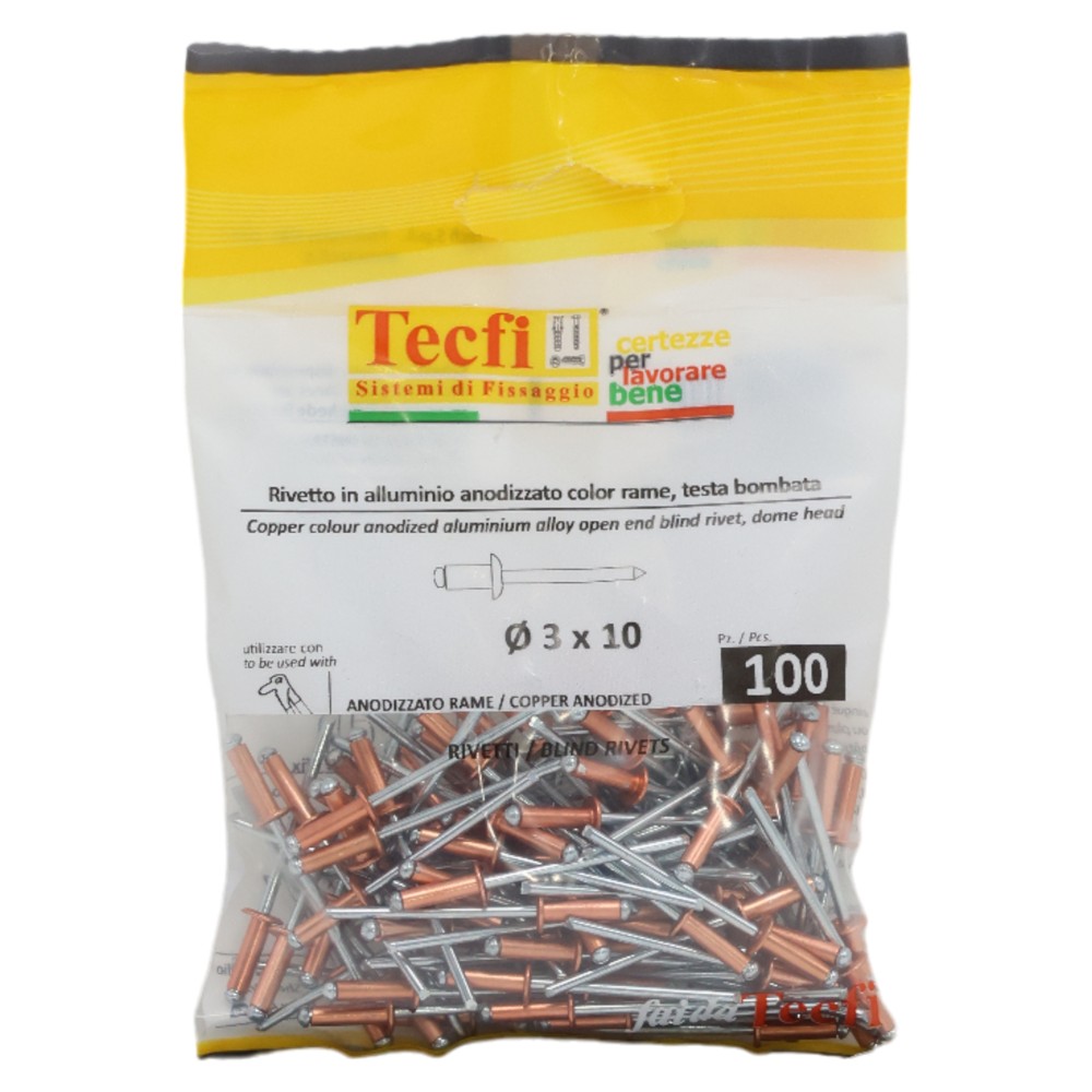 Perçina alumini anodizuara me ngjyrë bakri /çeliku, Ø 3,0 x 10mm , Bag 100